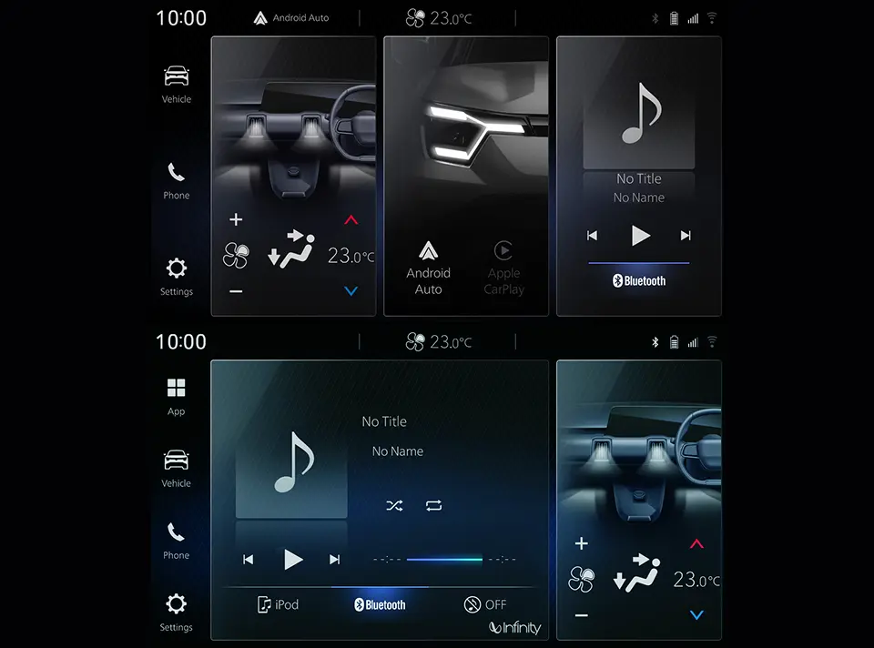 Air conditioning settings are operated directly from the display, enabling adjustment of temperature, airflow direction, and fan speed. The on-screen airflow visualisation helps the driver understand how air is distributed throughout the cabin for balanced and comfortable cooling