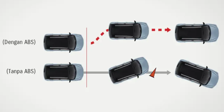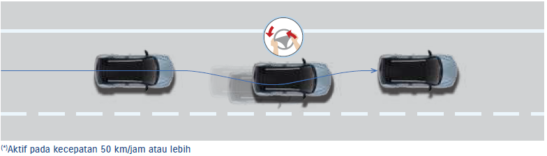Sistem akan membantu mengoreksi roda kemudi untuk menghindari