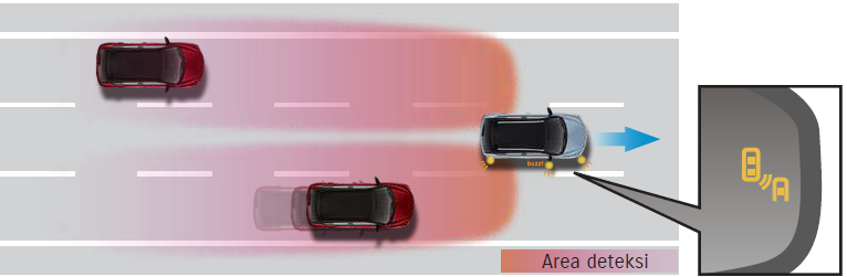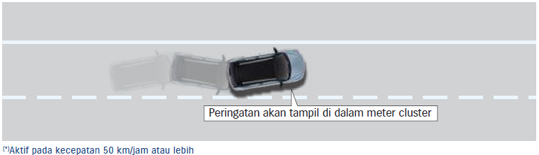 memperingatkan pengemudi melalui indikator visual di meter cluster